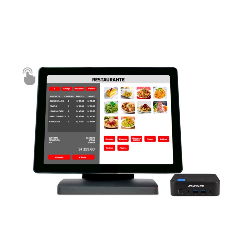 Punto de Venta - Mini PC Advance MP6560 NUC + Pantalla táctil multipunto + Ticketera Termica